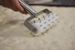 Bucasfoglia con manico e punte in acciao inox. Struttura e punte sono arrotondate per non forare la pasta. Ideale per focacce.